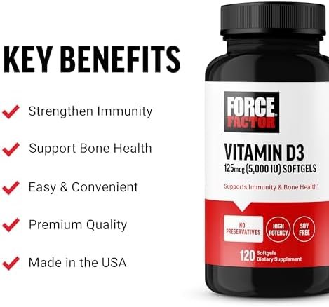 STRENGTHEN IMMUNITY: Force Factor Vitamin D3 is a powerful immune support supplement. Every easy-to-swallow softgel provides a high-potency dose of this essential vitamin to support immune function and daily wellness.