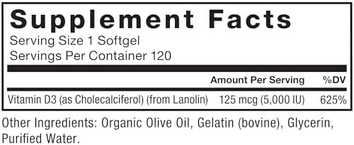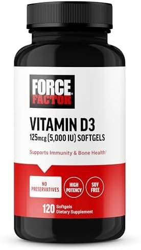 FORCE FACTOR Vitamin D3 5000 IU Softgels, High-Potency Vitamin D Supplement to Support Immunity and Bone Health, Premium Quality, No Preservatives, 120 Softgels