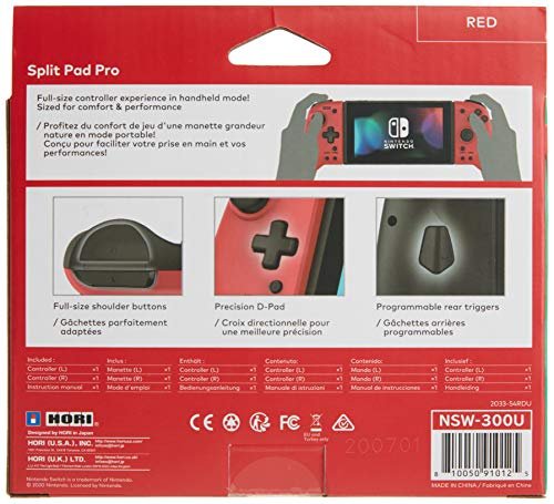 Enjoy the full-size controller experience in handheld mode with the HORI Split Pad Pro! Featuring full-size analog sticks, a precision D-pad, and large shoulder buttons designed for comfort and accuracy, even during marathon gaming sessions. Advanced features include assignable rear triggers, Turbo functionally, and more. Perfect for high-pace action titles and many other genres. Enhance your gaming experience with the Split Pad Pro! (Does not include Motion Controls, HD Rumble, NFC, or IR camera.) Officially Licensed by Nintendo