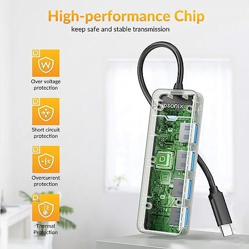 【Safe & Stable 】The 4-port USB C Hub 3.0 is quipped with a high-quality main control chip which can keep stable and efficient data transmission. Also providing over-current protection, over-voltage protection and overheating protection to ensure safety for your drivers and valuable data.