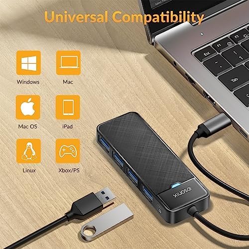【Easy to Use】The iDsonix USB hub 3.0 adapter is made of lightweight ABS plastic, small and compact, portable for travelling and carry. No drivers needed, plug and play, support hot swapping. Perfect for your office work.