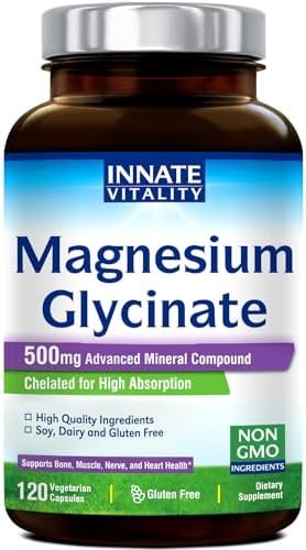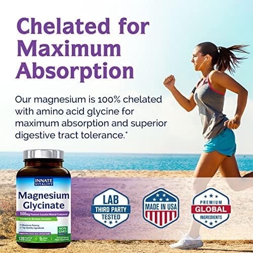 [100% Natural, Vegetarian-Friendly Ingredients] All Innate Vitality Magnesium Glycinate products are soy-free, gluten-free, dairy-free, Non-GMO & vegetarian, with no corn, no eggs, no wheat, no tree nuts, no peanuts, no fish, no shellfish, no artificial colors, flavors, binders or fillers. Our ingredients are also Kosher and Halal certified.