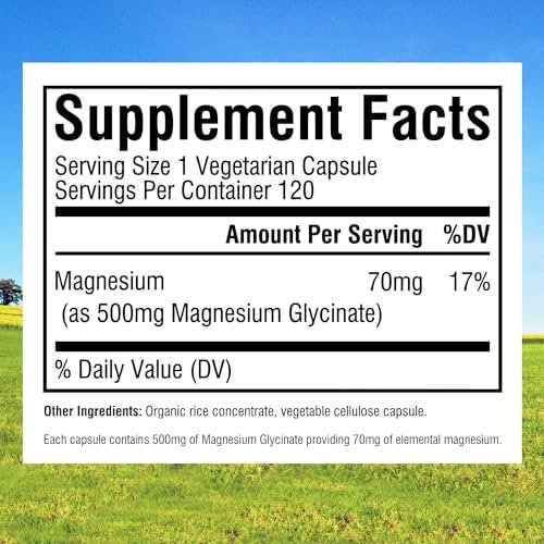 [The Most Bioavailable Form of Magnesium*] Our vegetarian formula contains 500mg of magnesium glycinate (also known as magnesium bisglycinate) per capsule, which is the easiest form of magnesium for the body to absorb.* The elemental form of magnesium is chelated to optimize bioavailability.* And each capsule delivers 70mg of elemental magnesium.