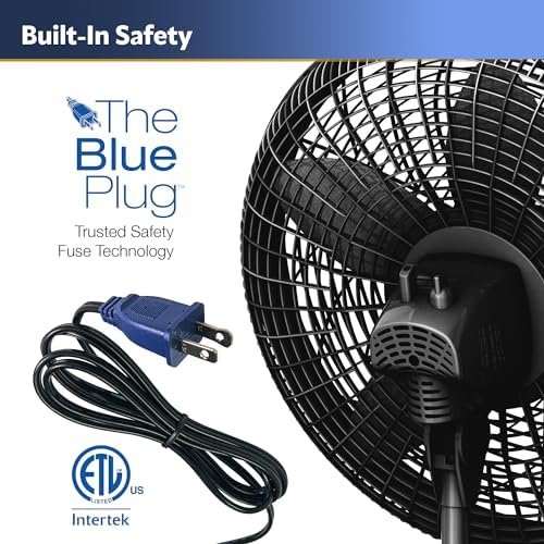 ✅【SAFETY FIRST】This fan is ETL listed and is equipped with the Lasko trusted safety fuse technology; THE BLUE Plug is designed to cut off electric current to the fan if it detects a potentially hazardous electrical fault in the motor or power supply