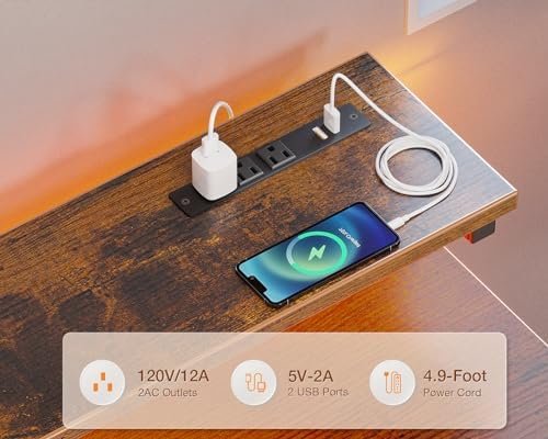 【USB Charging Ports & Power Outlets】The computer desk is equipped with 3 power outlets and 2 USB charging ports for your electronic devices, you can easily and conveniently charge your smart phone, gaming gear or Bluetooth devices when you work from home or play computer games. A versatile hook provides additional storage space for your convenience.