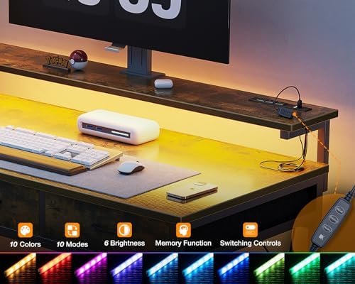 【Gaming Desk with Colorful LED Lights】This gaming desk features LED strip that contains 10 static colors, 6 brightness grades, 10 dynamic modes and memory function with switching controls. Adjusting to the proper lighting can reduce eye strain, improve focus, and create a comfortable workspace/gaming space.