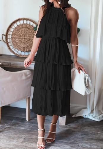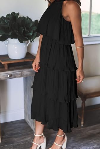 ZESICA Women’s 2024 Summer Sleeveless Halter Neck Ruffle Tiered Layed Chiffon Flowy Swing Long Midi Dress